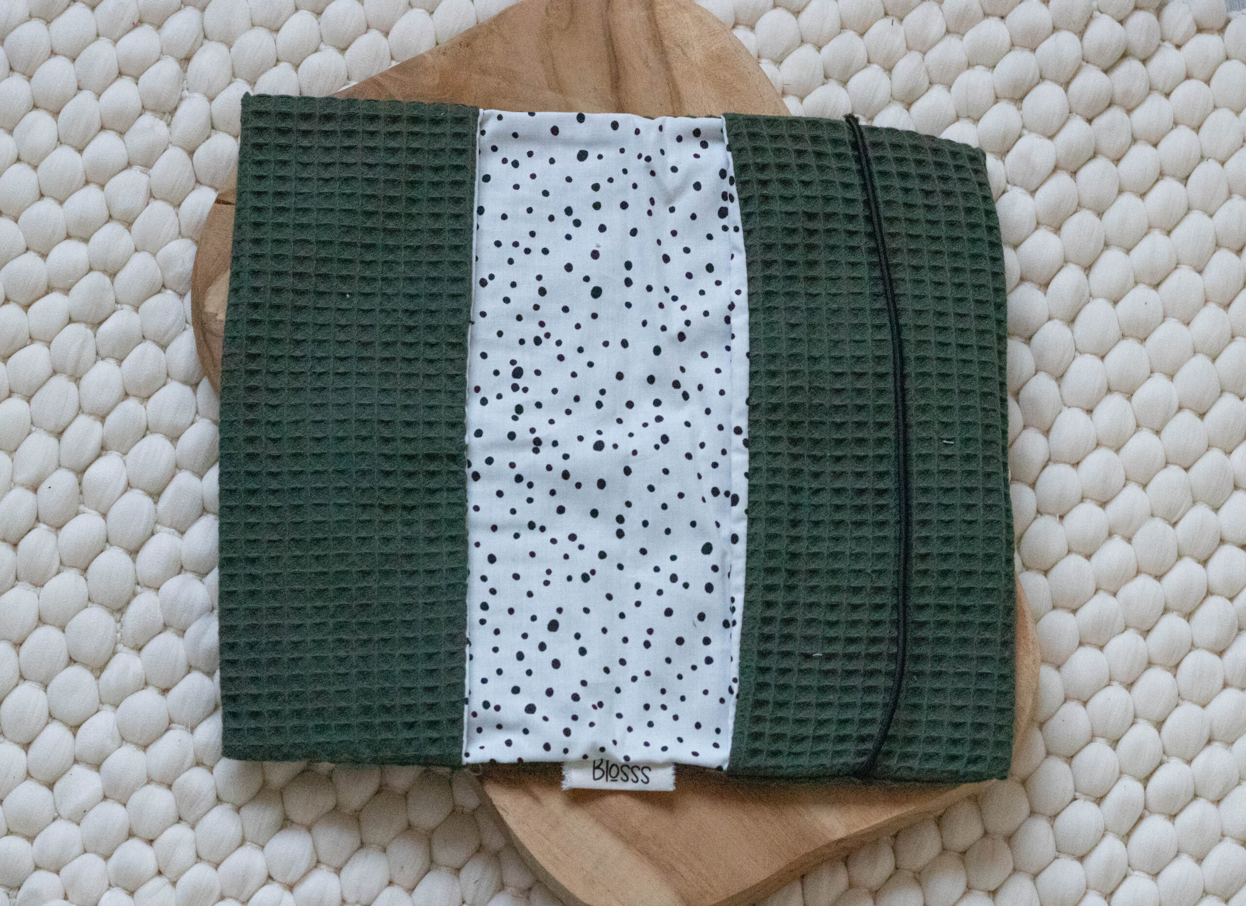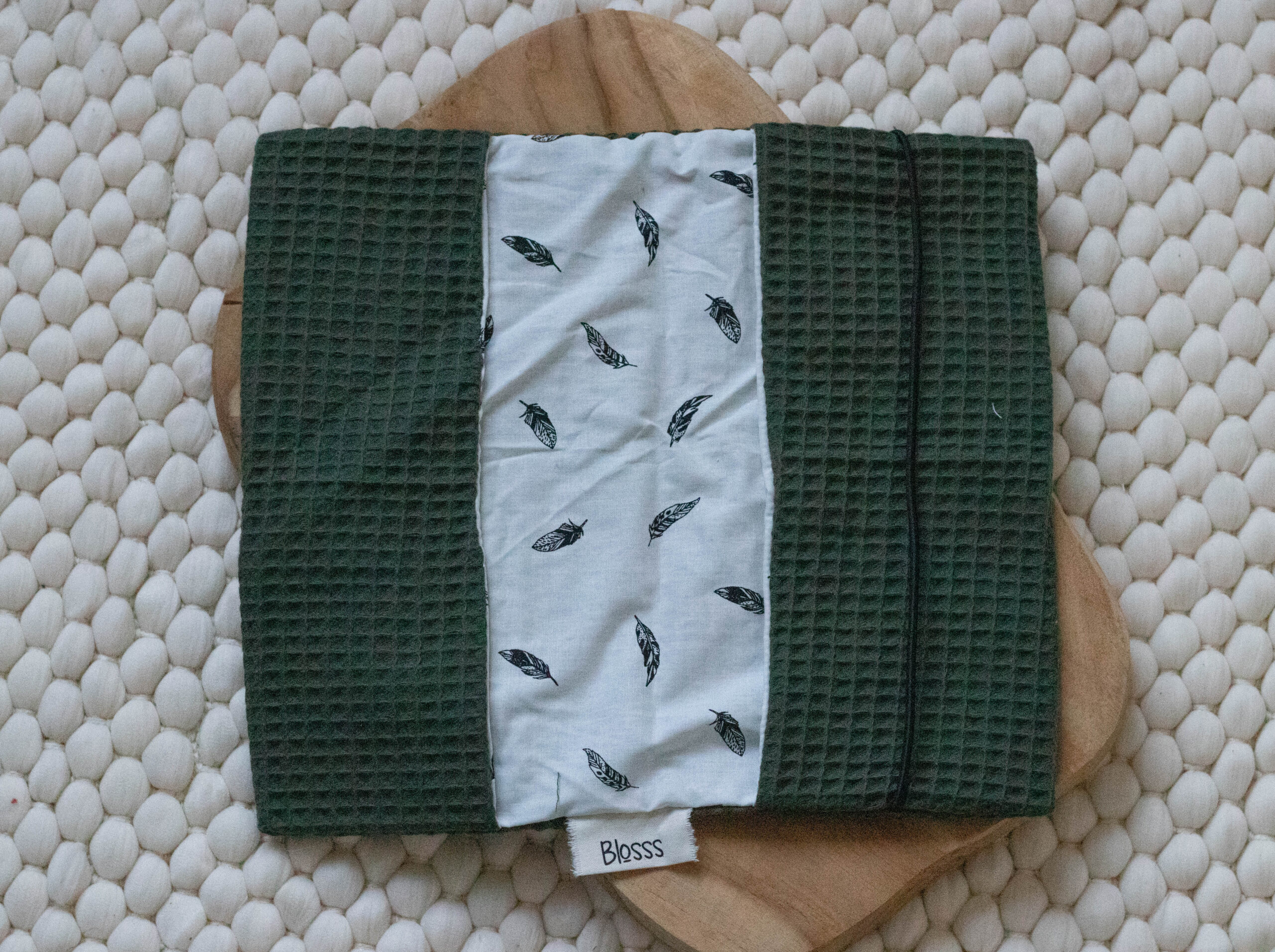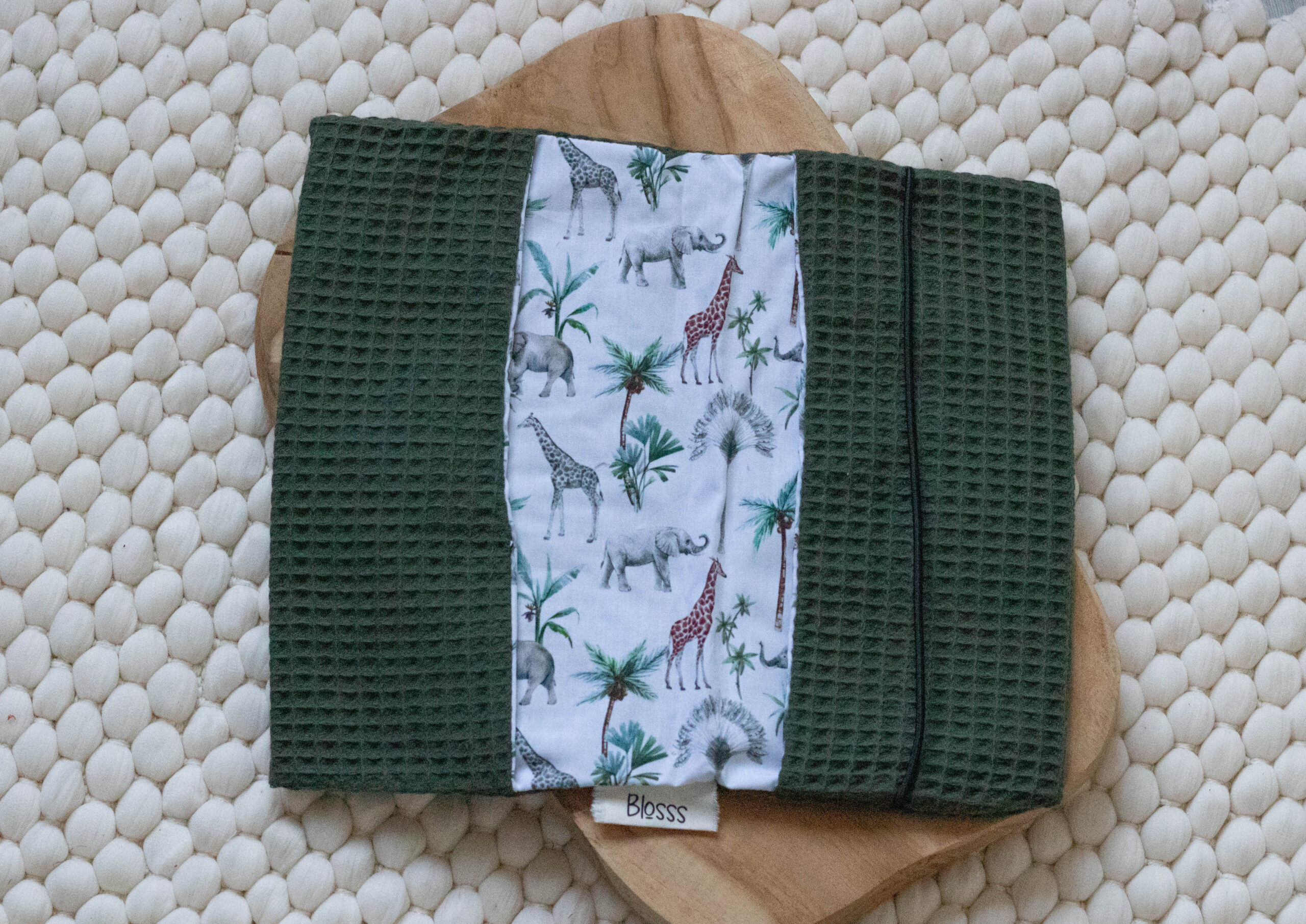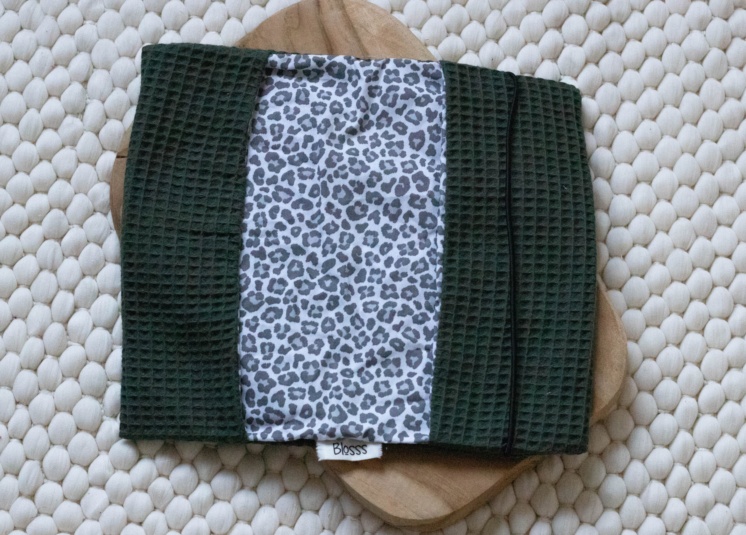 • Materiaal: Wafelkatoen gecombineerd met geprinte katoen.