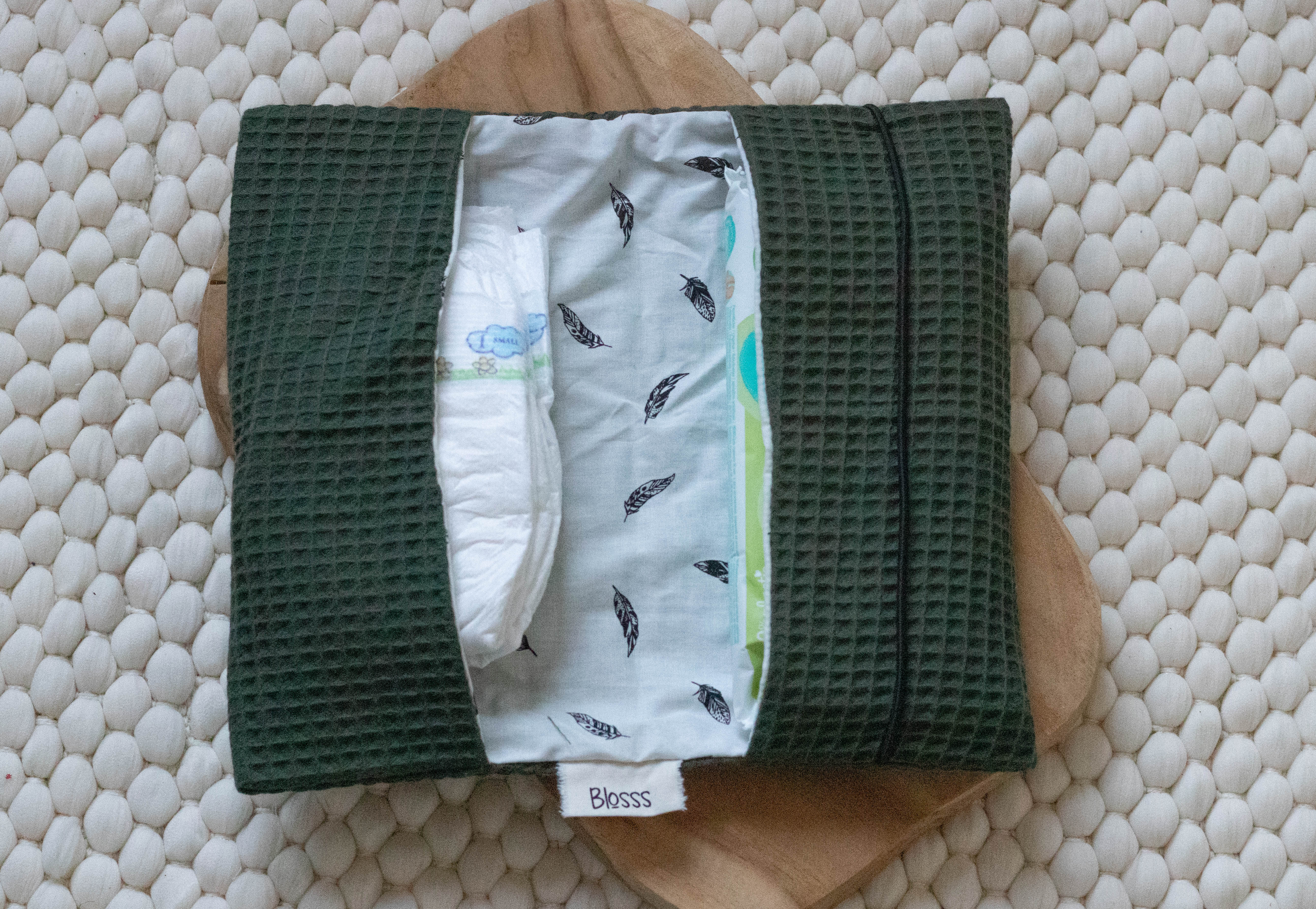 Nooit meer losse luiers of rondslingerende doekjes onderin je tas! Met de luieretui van Blosss heb je alles voor het verschonen van je kleintje compact en georganiseerd bij de hand. Of je nu even snel een boodschap doet of een dagje uit gaat, deze etui past in elke tas en ziet er ook nog eens prachtig uit.