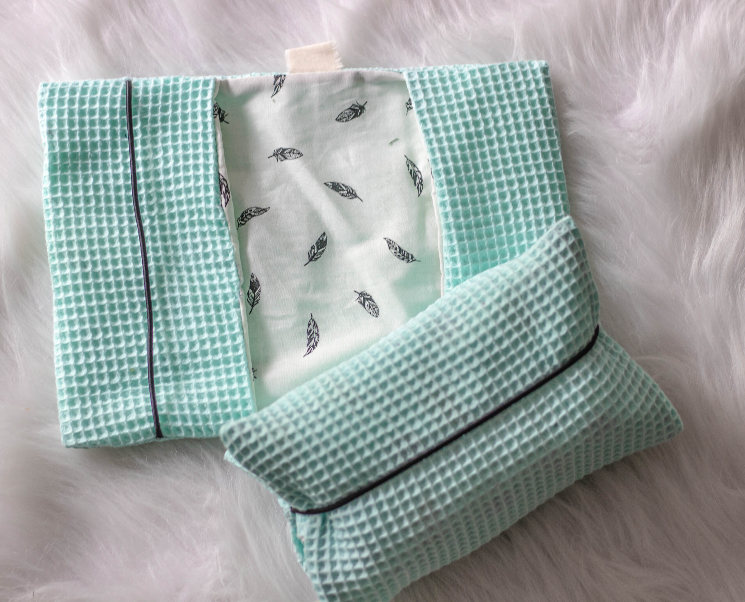 Materiaal: Wafelkatoen gecombineerd met geprinte katoen.