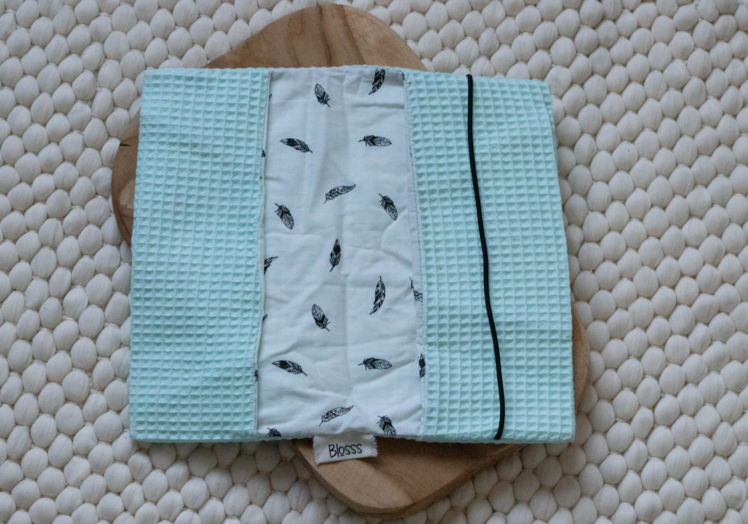 Kleuren: Verkrijgbaar in diverse kleuren wafelstof (zoals mint, navy en grijs) met vrolijke binnenprints.