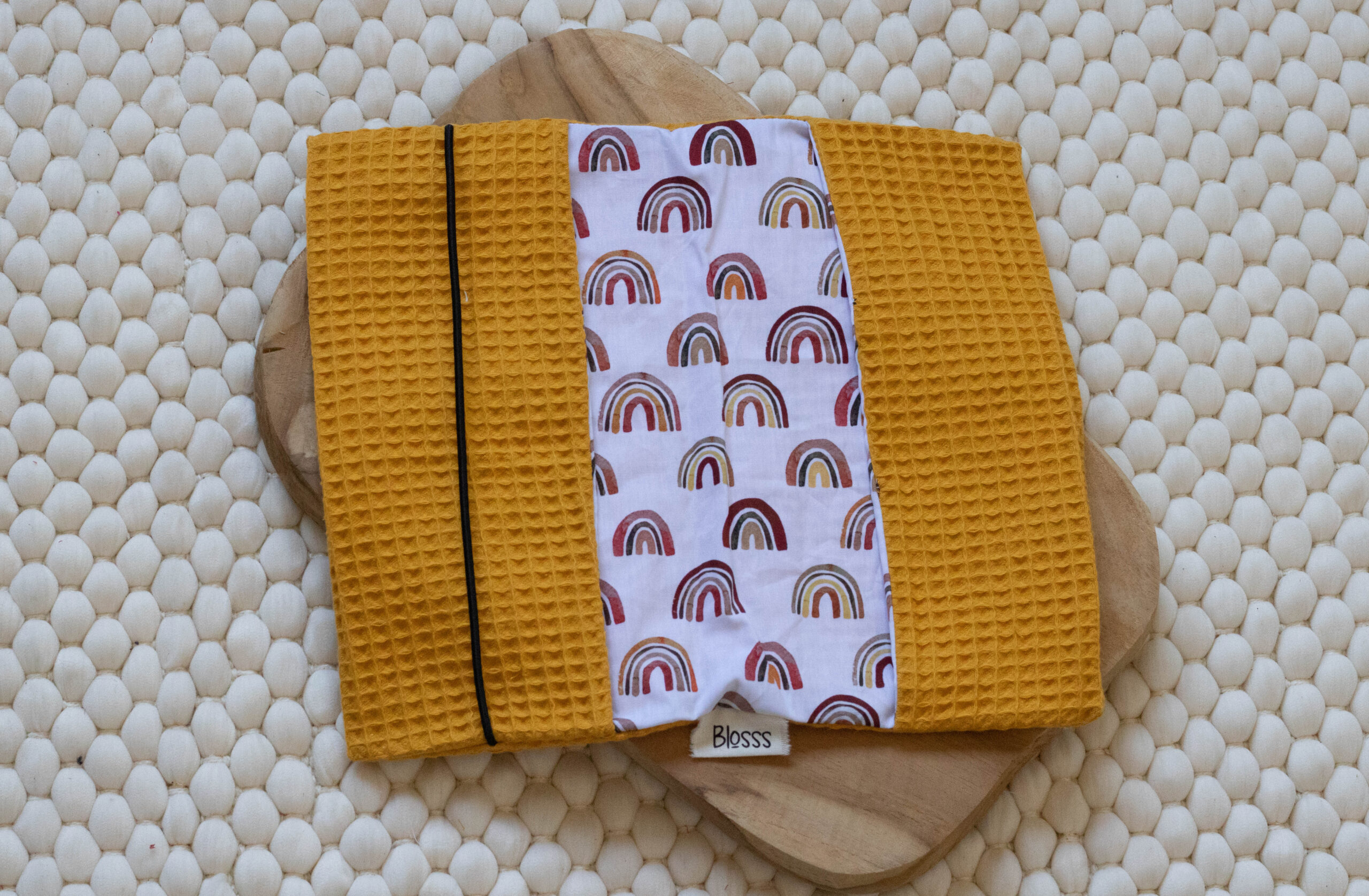 Materiaal: Wafelkatoen gecombineerd met geprinte katoen.