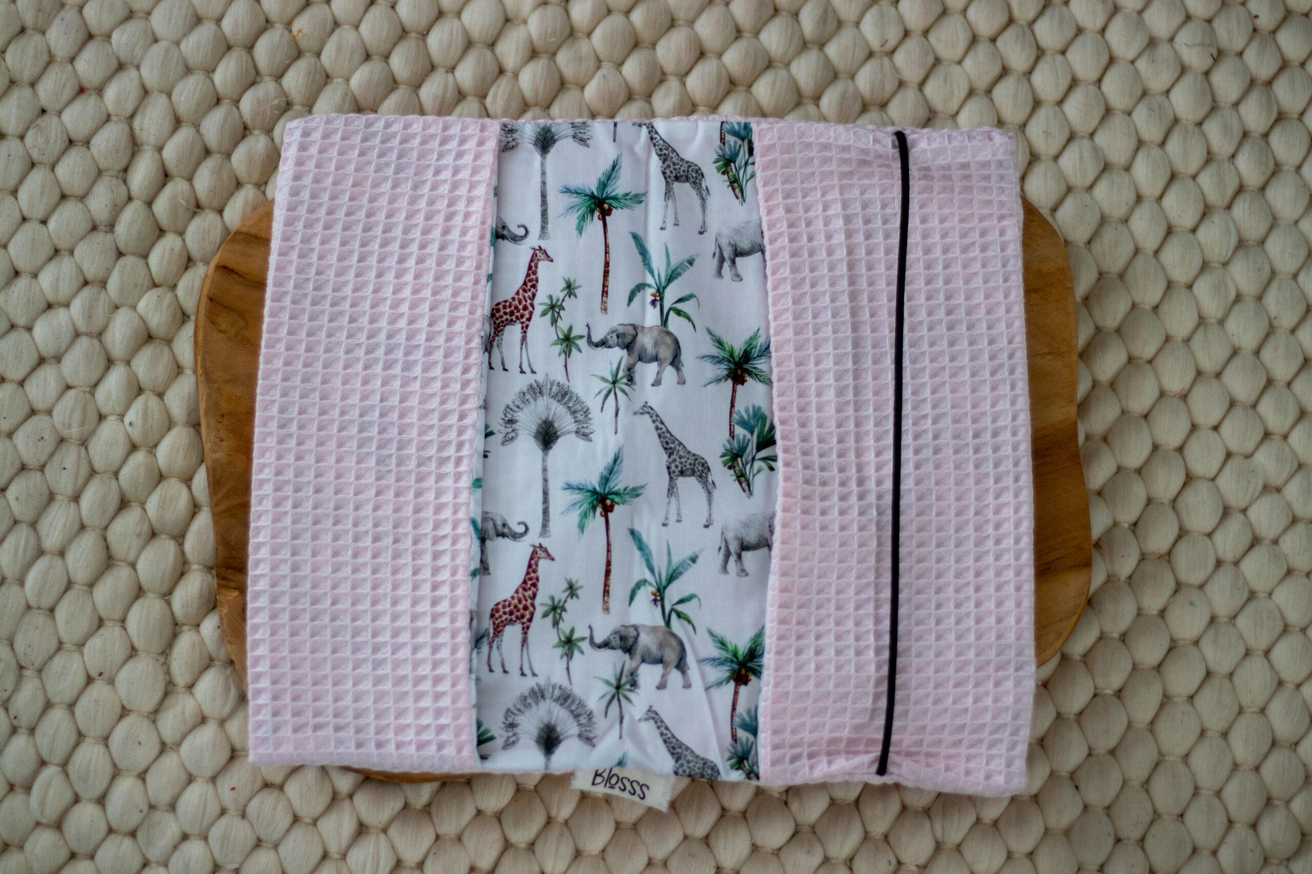 Materiaal: Wafelkatoen gecombineerd met geprinte katoen.